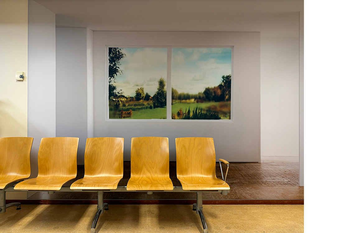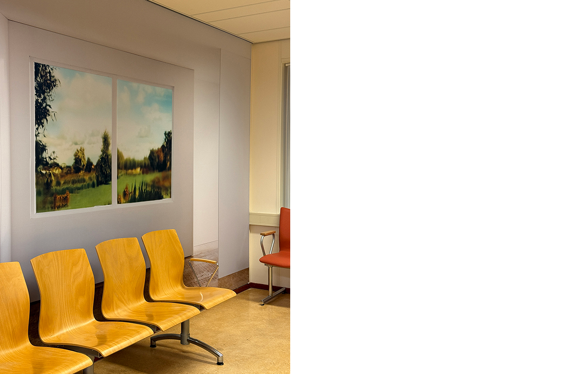The result is a waiting room with a view, a large trompe l’oeil in Leiden University Medical Hospital.
