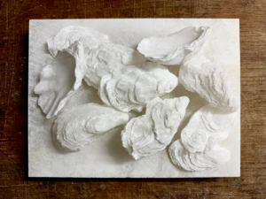 Hester Alberdingk Thijm and Augusto Pereira Silva came for a studio visit and chose one of the waves and commissioned me to make an artwork with alabaster. The result is a combination of waves and shells. Photography and sculpture forming a whole.